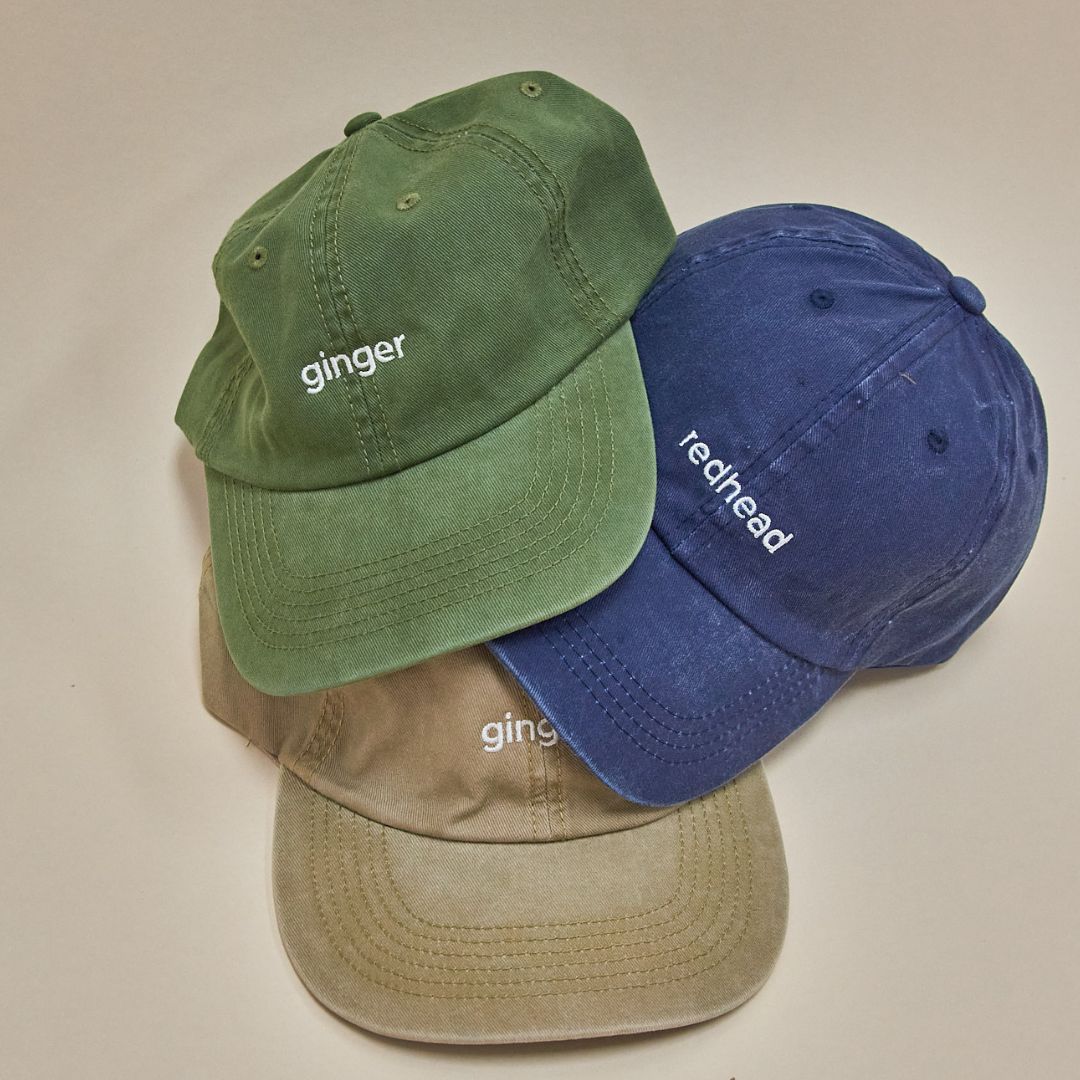 This soft denim baseball cap features minimalist ginger embroidery—subtle, cool, and unmistakably bold in two colors – khaki and green.